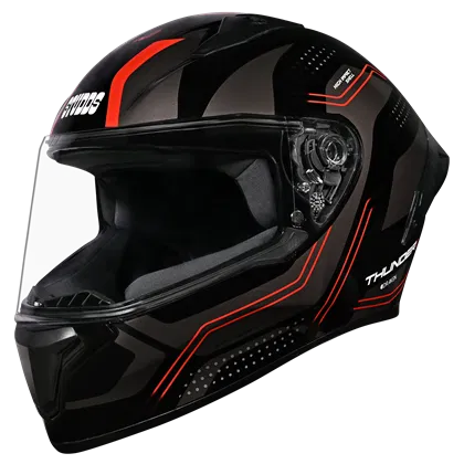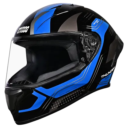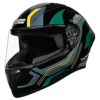Thunder D2 Draken is a full-face helmet featuring a spoiler for enhanced aerodynamics. Its high-impact outer shell and regulated density EPS ensure top-notch protection. The dynamic ventilation system keeps you cool, while the hypoallergenic, replaceable liner guarantees comfort and hygiene. With a quick-release visor and chin strap for convenience, this helmet prioritizes safety and ease of use.